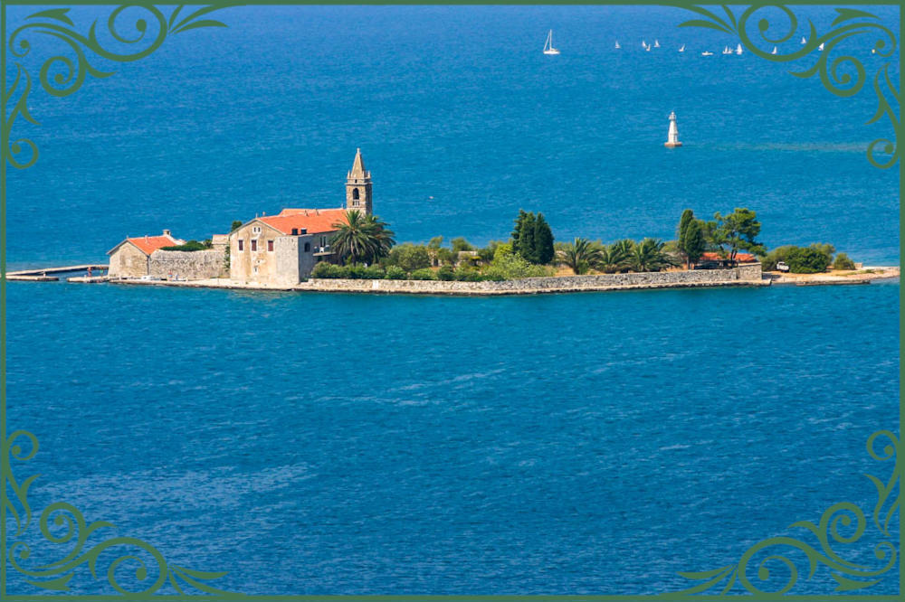 Sa Mula se pruža pogled na Ostrvo Sveti Mihailo (Miholjska prevlaka – Ostrvo cvjeća) i ostrva Sveti Marko i Gospu od Milosti (Školj) i ceo Tivatski zaliv.
